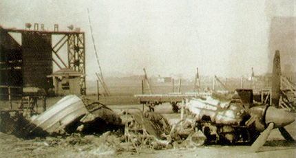 The Pakistani Air Force hangar at the Dhaka airfield after a strike by the IAF.