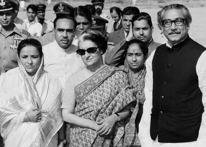 In this picture Sheikh Mujibur Rahman is seen with Indian Prime Minister Indira Gandhi. After his release from a prison in Pakistan, Rahman, popularly called Bangabandhu, became the first Prime Minister of a new country Bangladesh.